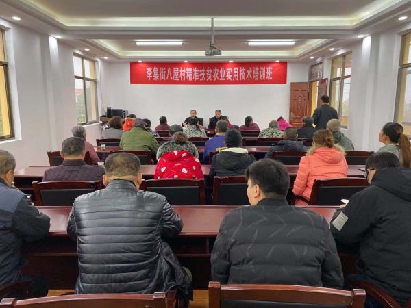 11月27日,为进一步增强精准扶贫劳动力培训的针对性和时效性,提升贫困家庭劳动力技能水平和就业创业能力,市政府办公厅驻李集街八屋村工作队和村两委,联合举办了精准扶贫农业实用技术培训班。